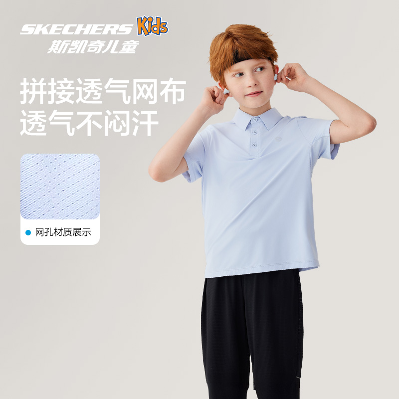 儿童凉感T恤衫 Skechers斯凯奇2025年新款 POLO衫 儿童针织短袖 夏季