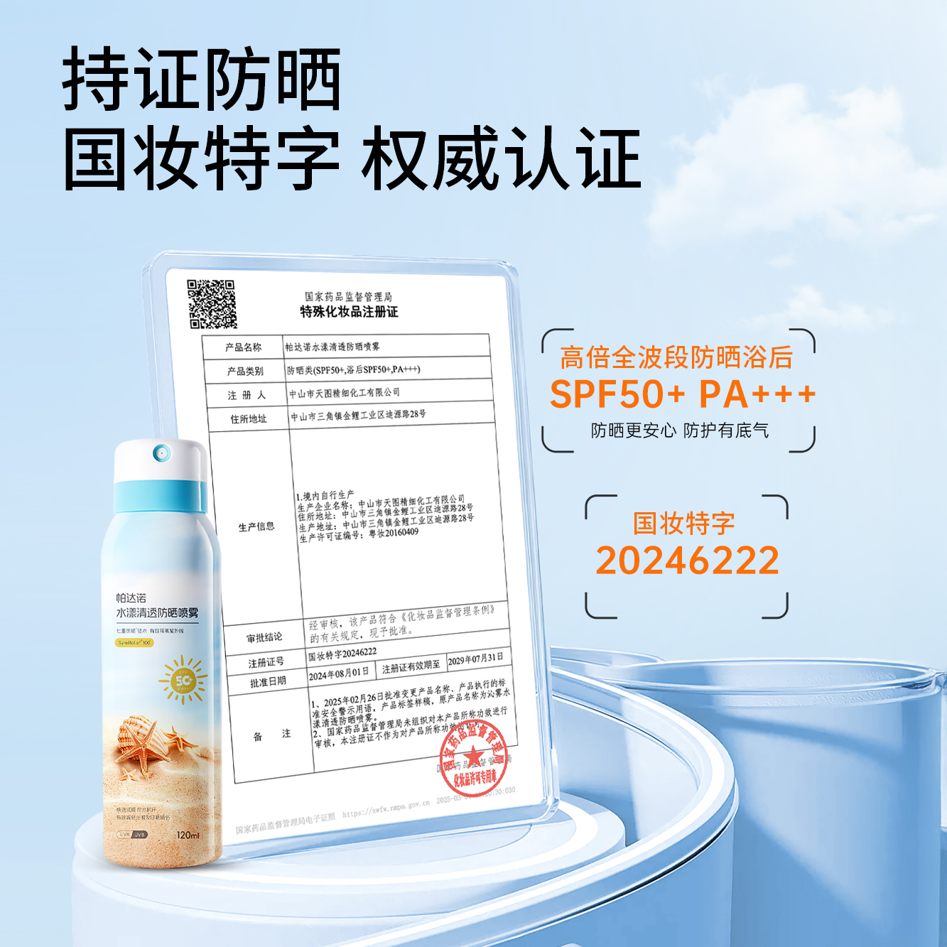 帕达诺防晒喷雾学生男女大人青少年军训全身通用防紫外线专用隔离