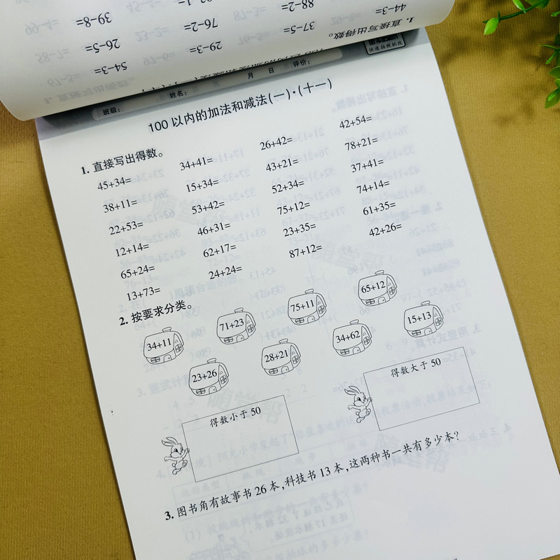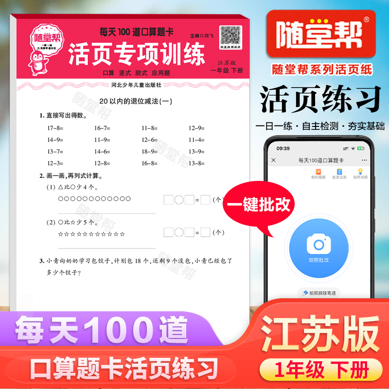 应用题卡苏教版 脱式 配套课时练习册综合练习课外作业 一年级下册数学专项训练活页可撕易撕每天100道口算题卡天天练口算竖式 江苏版