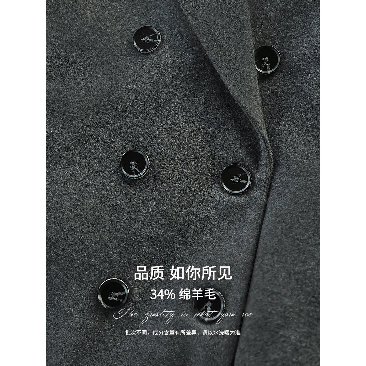 图曼朵灰色双面呢羊毛大衣女秋冬新款 毛呢短外套 高级感小个子短款