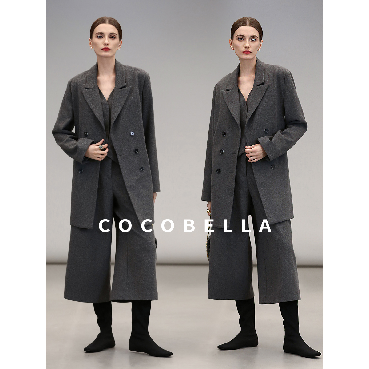 预售COCOBELLA小香风毛呢外套女新款 醋酸大衣WL3226 粗花呢中长款