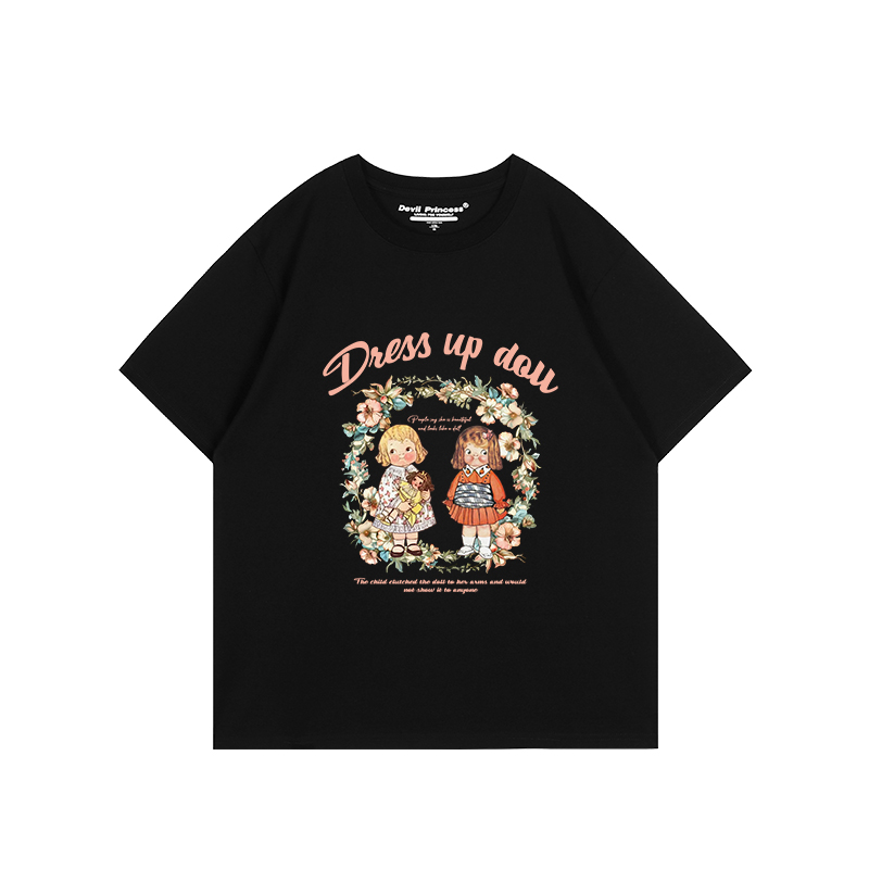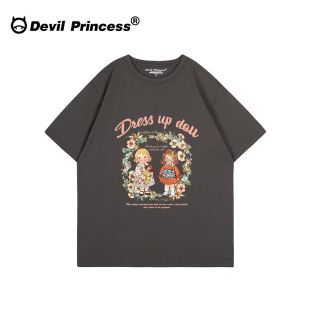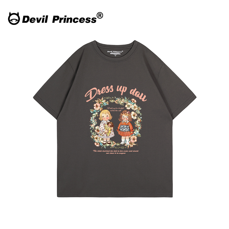 上衣 t恤女高街设计感甜酷风正肩半袖 vintage美式 复古风深灰色短袖