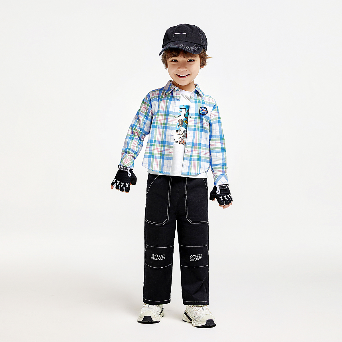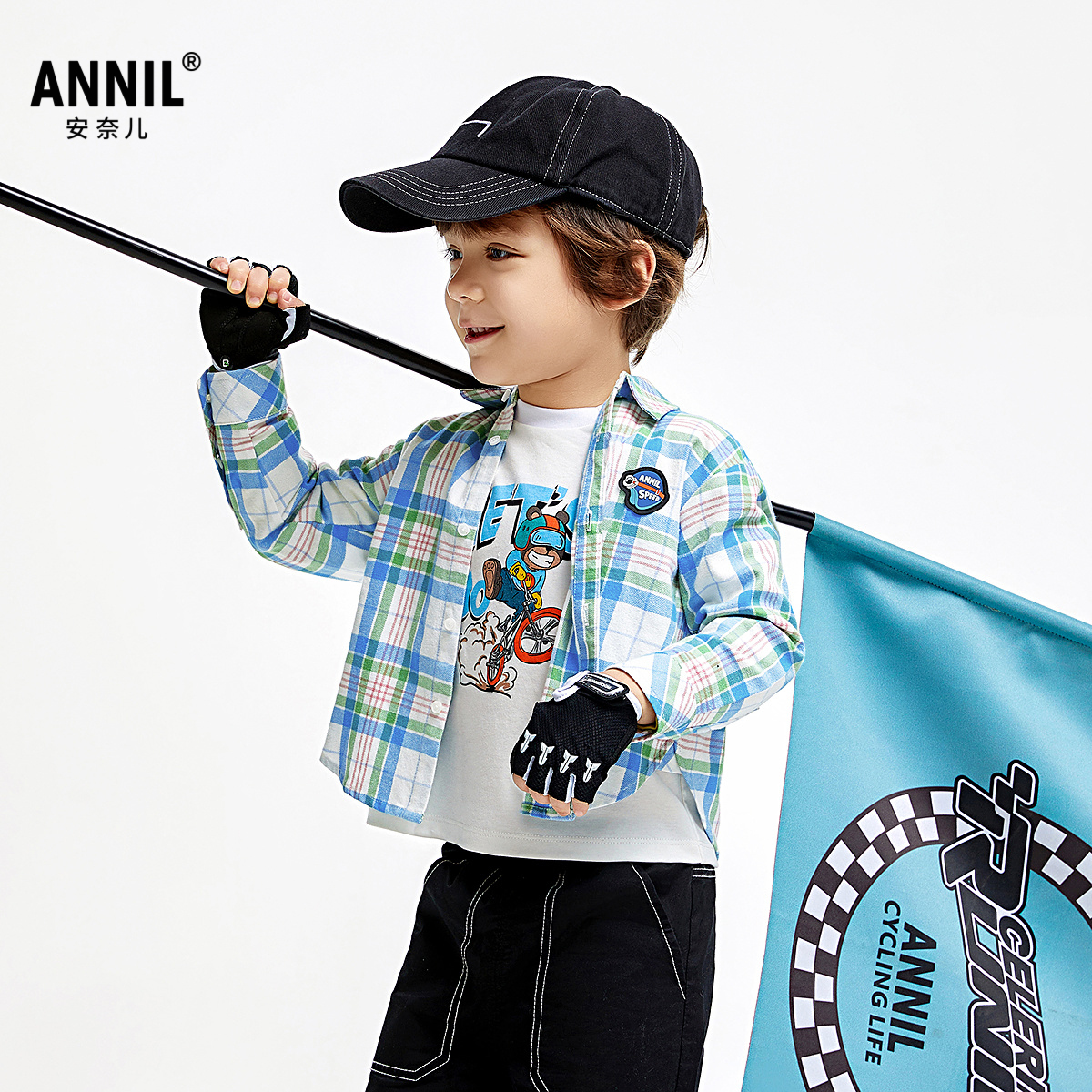 商场同款 2025春新款 安奈儿童装 格子衬衫 XB511725 男童翻领长袖