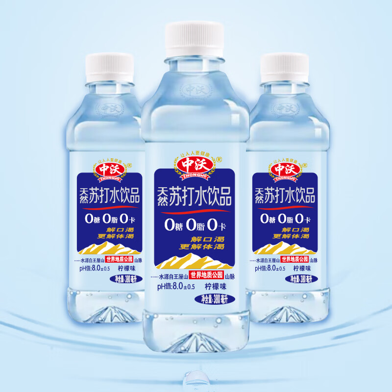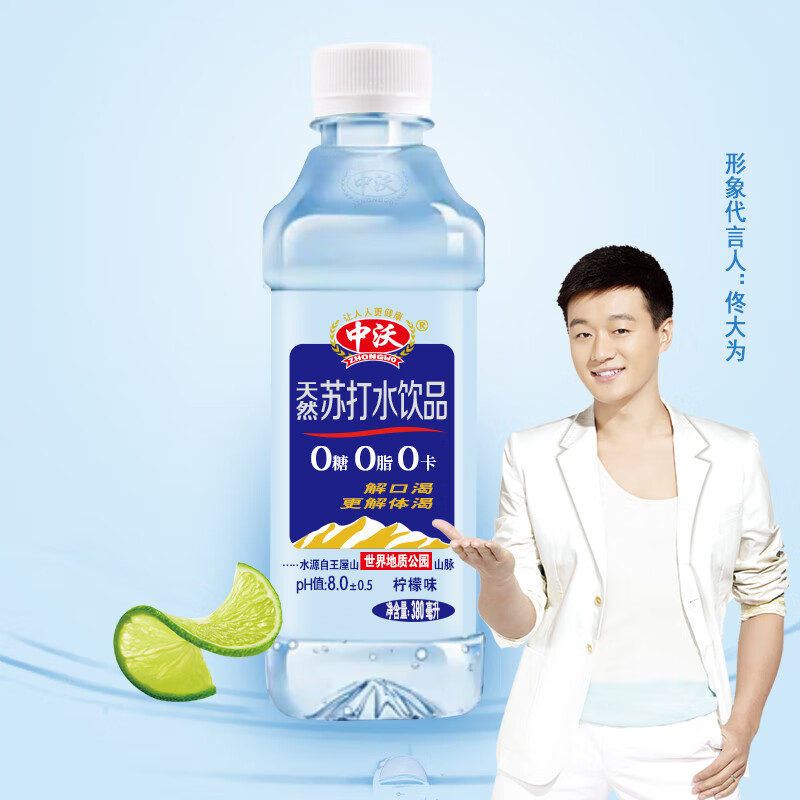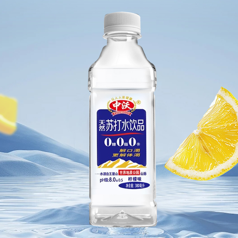 中沃苏打水0糖0卡0脂柠檬味碱性水柠檬味无糖饮料380ml 24瓶