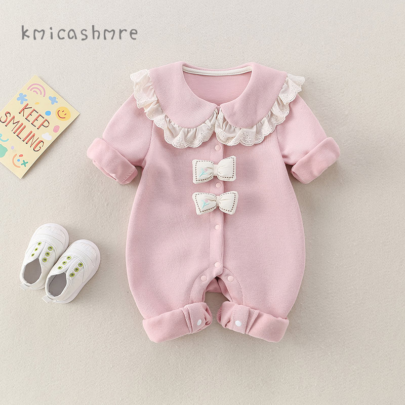 kmi女宝宝春季 连体衣外出服 衣服甜美哈衣满月百天公主风婴儿春装