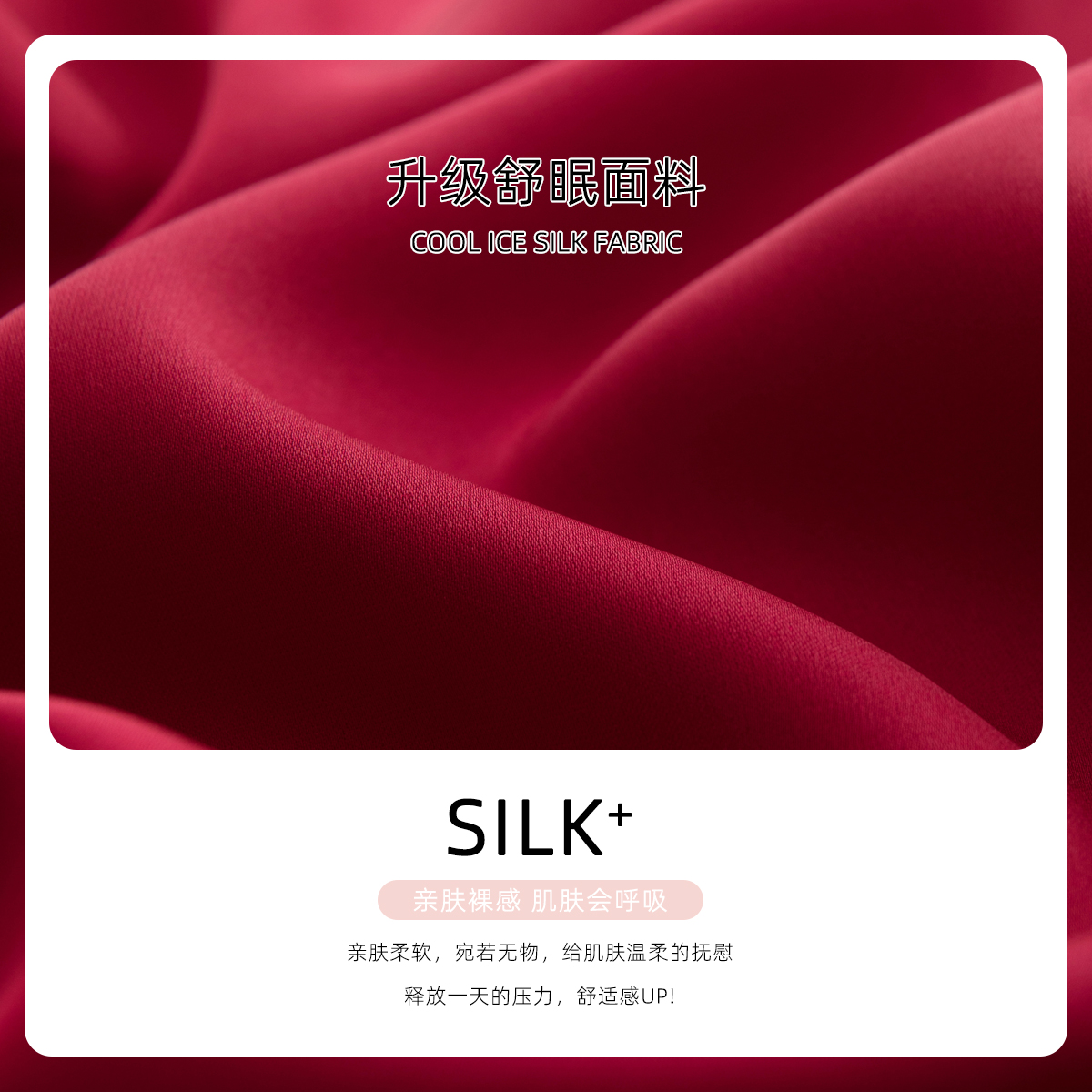 乐姿梦冰丝睡裙女士吊带夏季 带胸垫睡衣红色性感纯欲风2025年新款