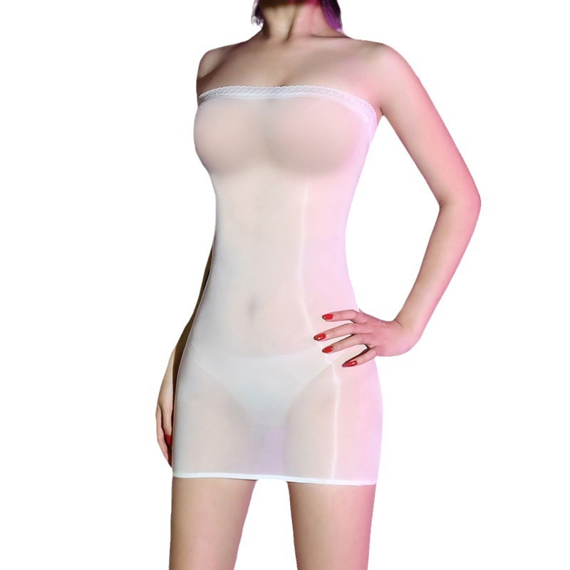 油亮丝滑抹胸半身包臀裙睡裙紧身超薄短裙透明裹胸半身裙纯色弹力