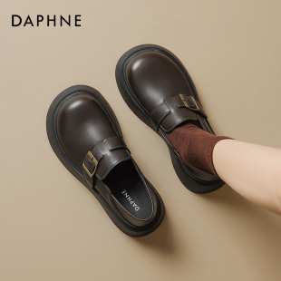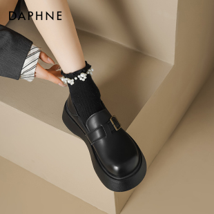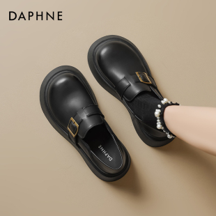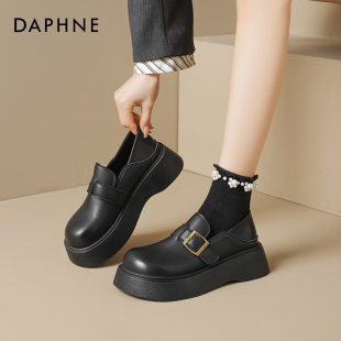 子增高英伦单鞋 达芙妮厚底乐福鞋 一脚蹬黑色小皮鞋 新款 女2025春季