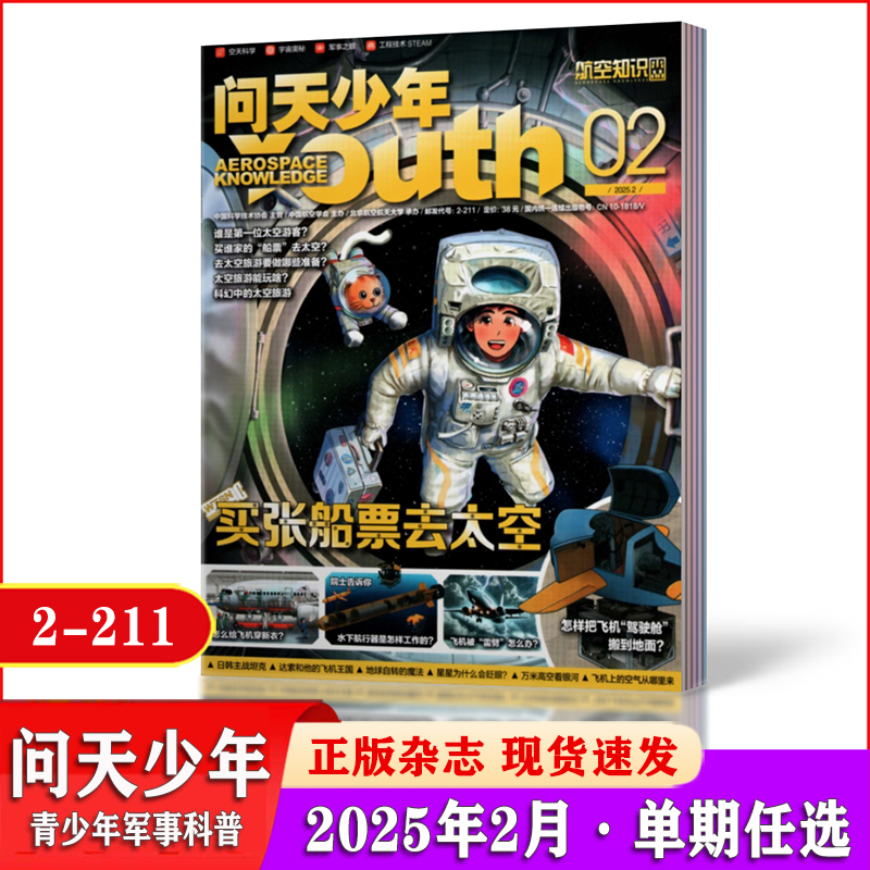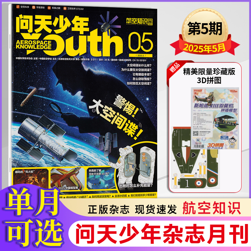 8月 问天少年杂志2025年1 2024年1 秘密青少年版 赠模型图解民航飞行 学生太空知识宇宙航天科技军事科普 3月