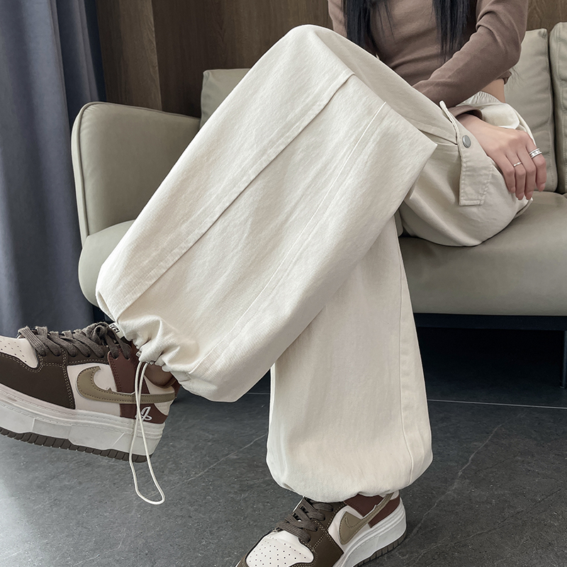 高腰遮跨香蕉镰刀弯刀直筒阔腿运动裤 女春秋小个子美式 裤 白色工装