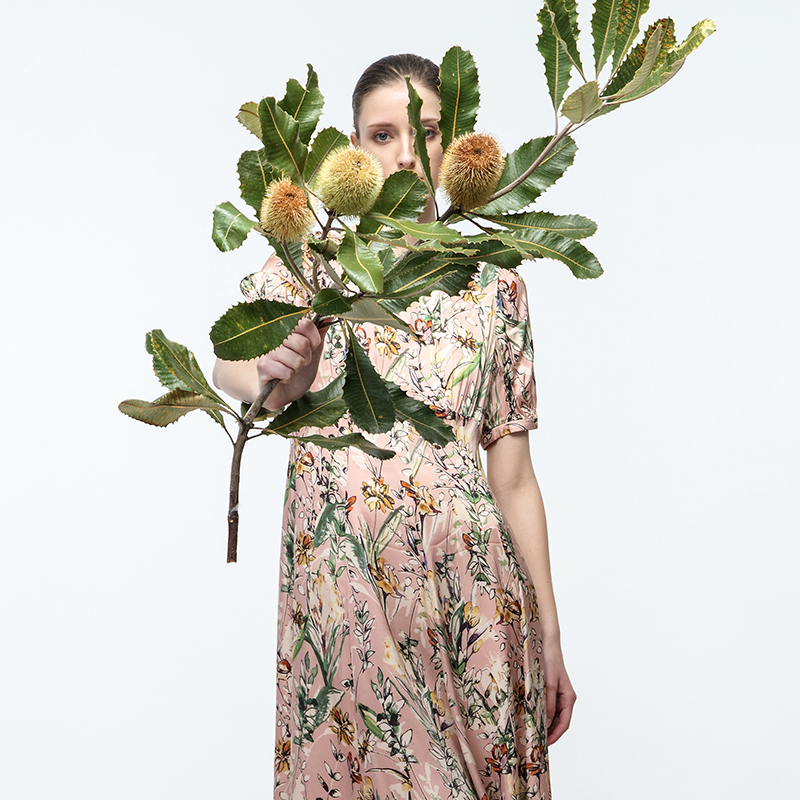 女式 无袖 连衣裙 复古植绒印花弹力修身 Desigual25秋冬新品
