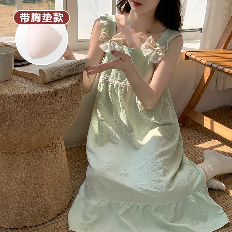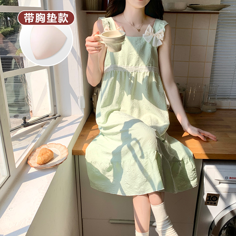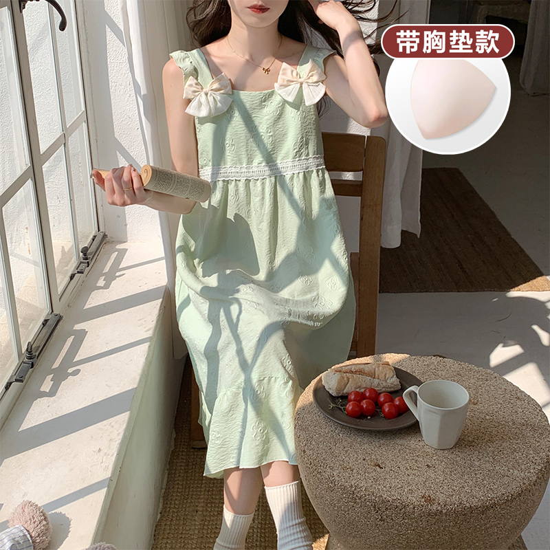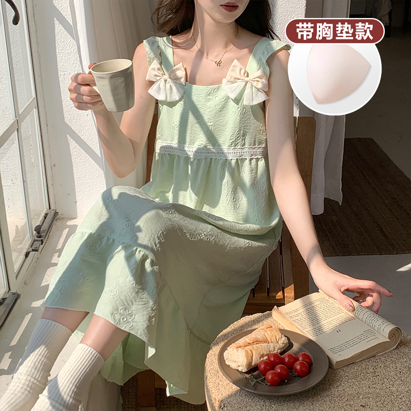 加肥大码 薄款 胖妹宽松甜美小清新睡衣 吊带胸垫睡裙女夏季 2025新款