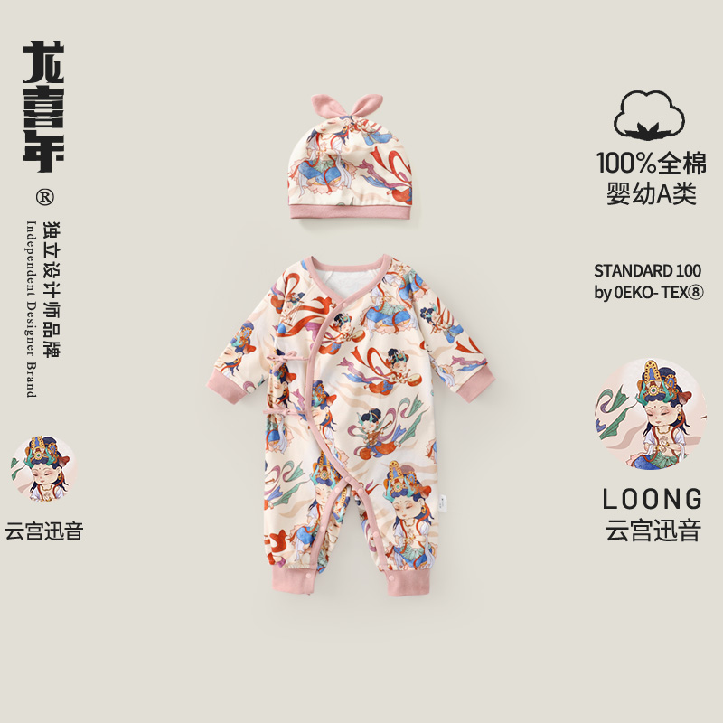 龙喜年婴儿百天宝宝衣服中式 国风纯棉满月抓周百日宴连体礼服女秋