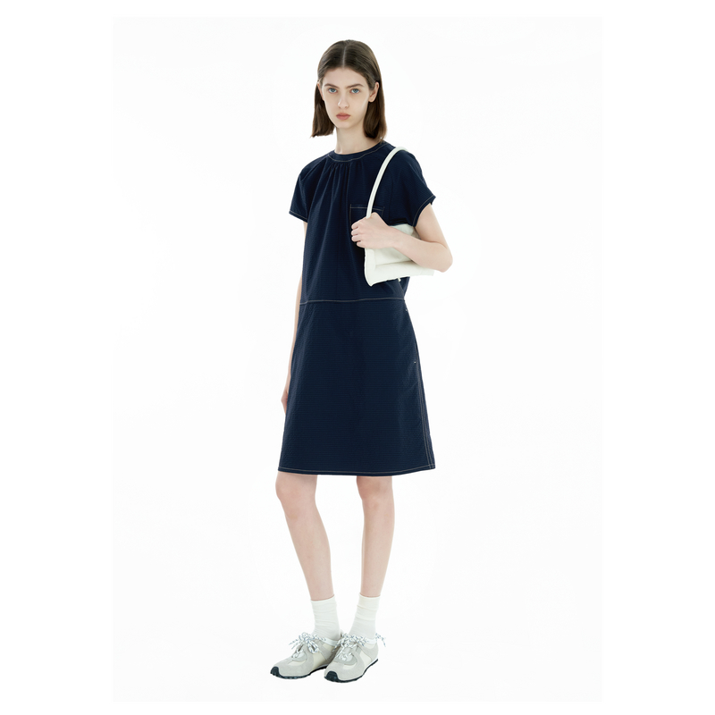 条纹弹力腰中长裙子 飞飞袖 Juicy Couture橘滋连衣裙女25年夏新款