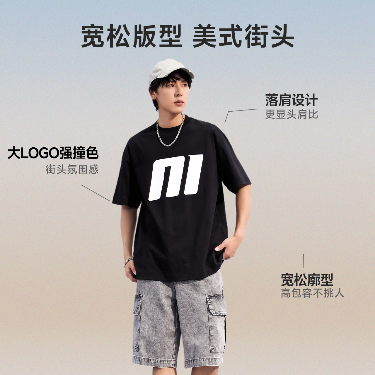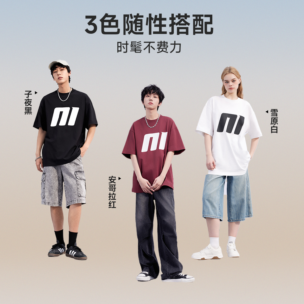 潮流宽松大字体印花情侣 新款 美特斯邦威重磅短袖 T恤男2025夏季