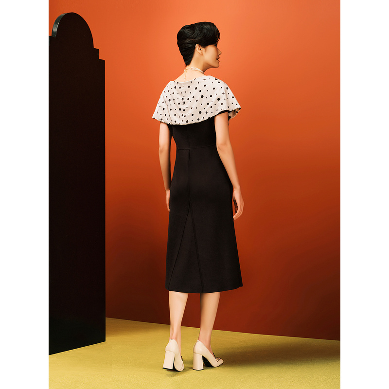 法式 LULUALWAYS 新款 25秋季 优雅浪漫温柔木耳边连衣裙 商场同款