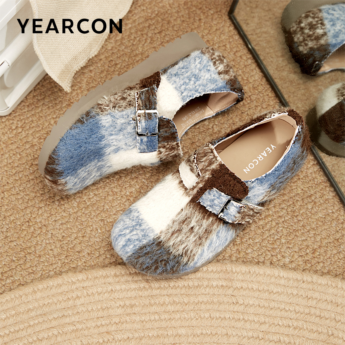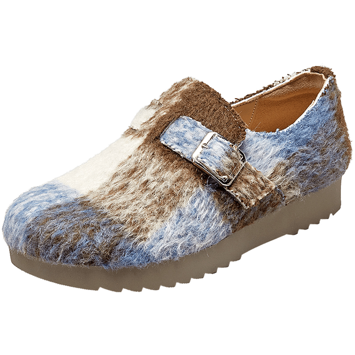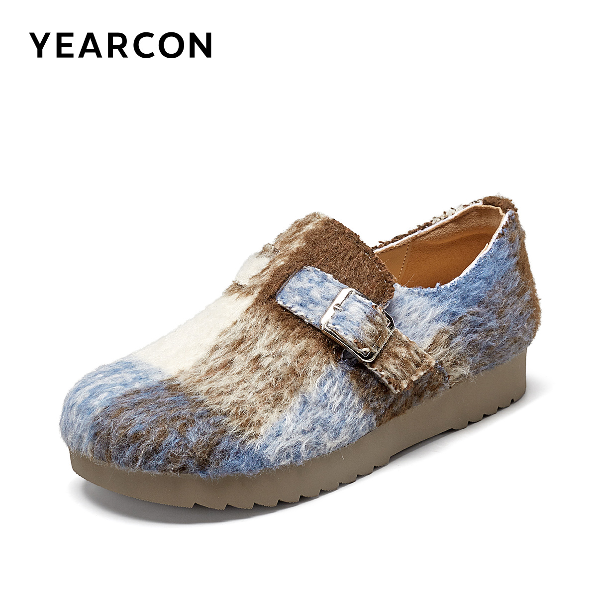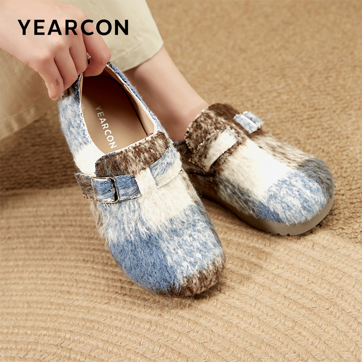 平底休闲单鞋 意尔康女鞋 懒人复古毛毛鞋 毛呢勃肯鞋 2025新款