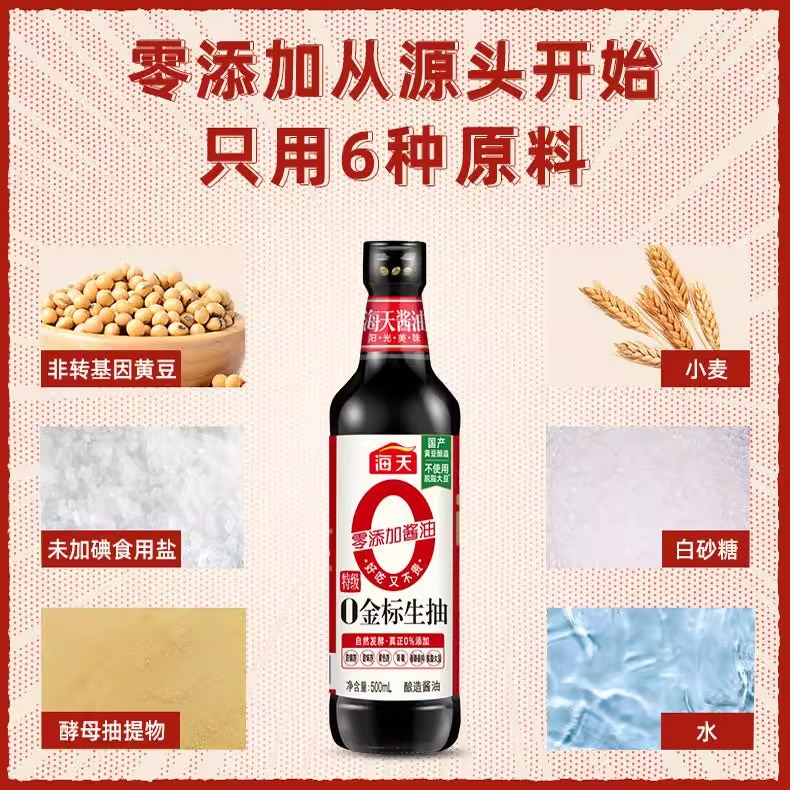 海天零添加酱油0金标生抽1.28L特级生抽炒菜凉拌家用
