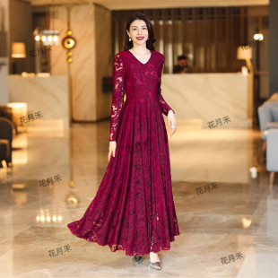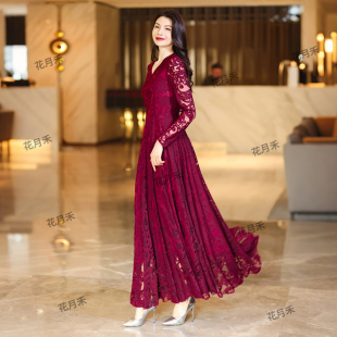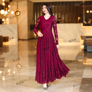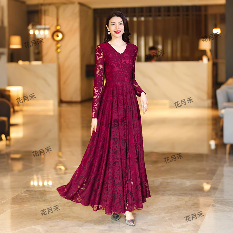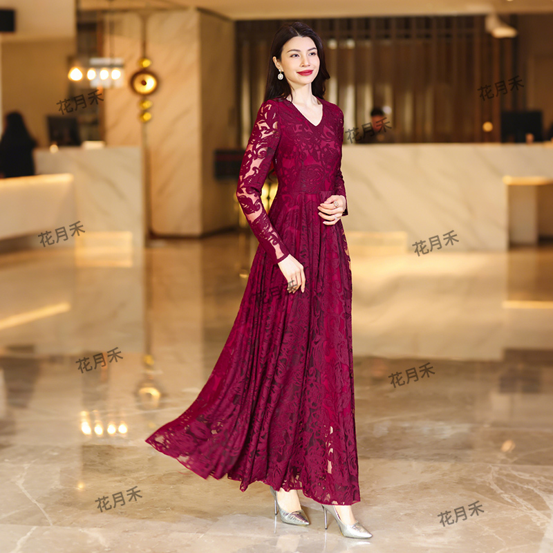 2025年新款 剪花大摆连衣裙长裙雪纺裙沙滩裙子 春秋冬优雅气质长袖
