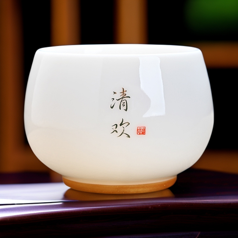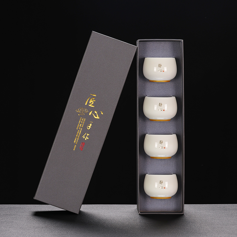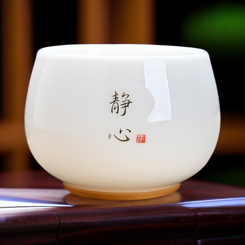 羊脂玉瓷罗汉杯主人杯喝茶大容量个人专用杯礼盒装 陶瓷茶杯茶具