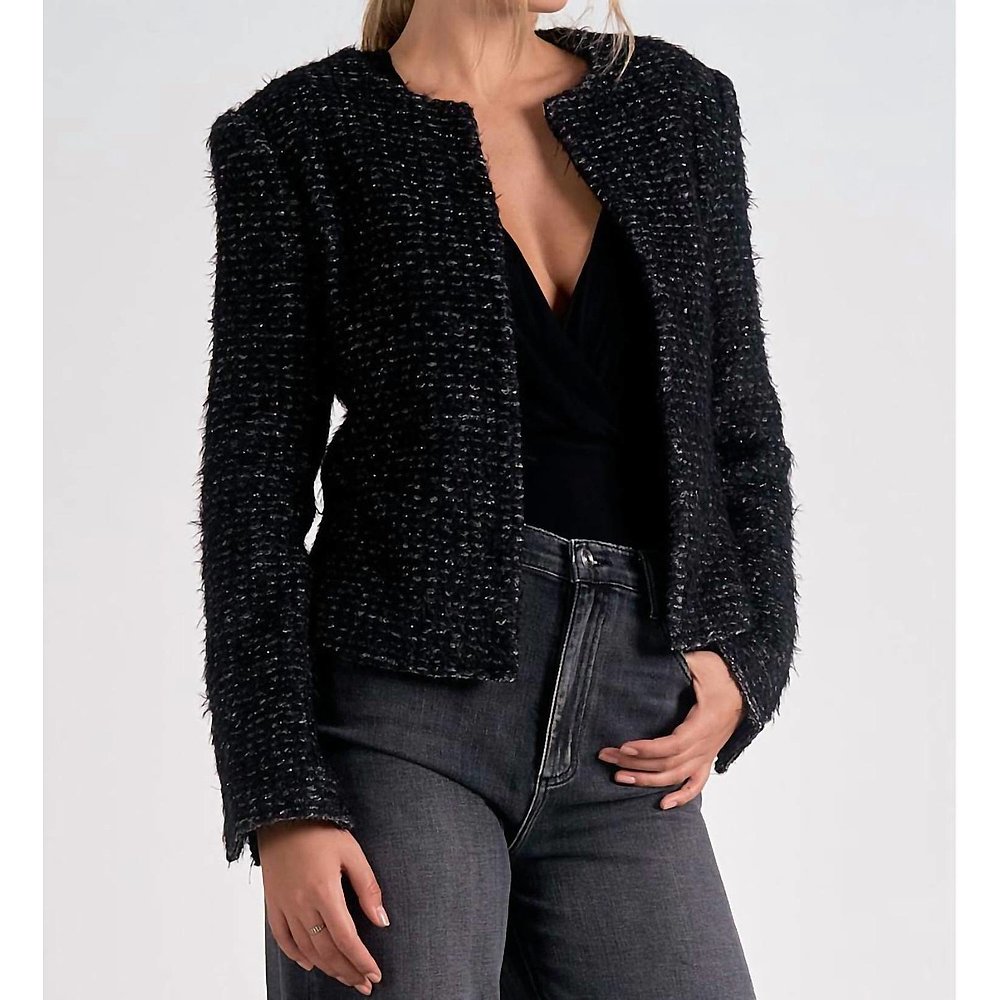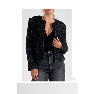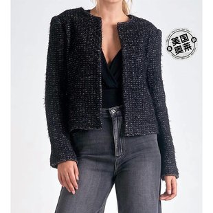 黑色 新款 银色西装 银色 美国奥 外套 自营elan香奈儿风格