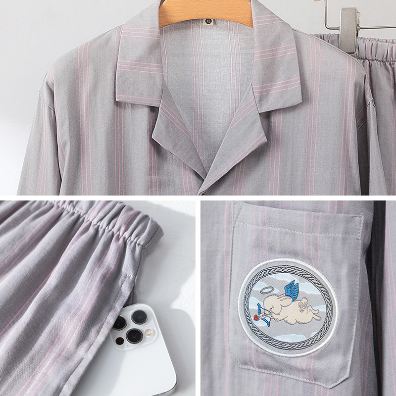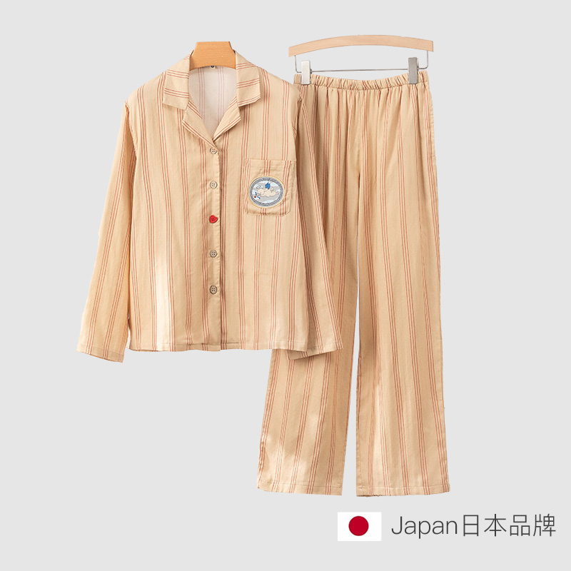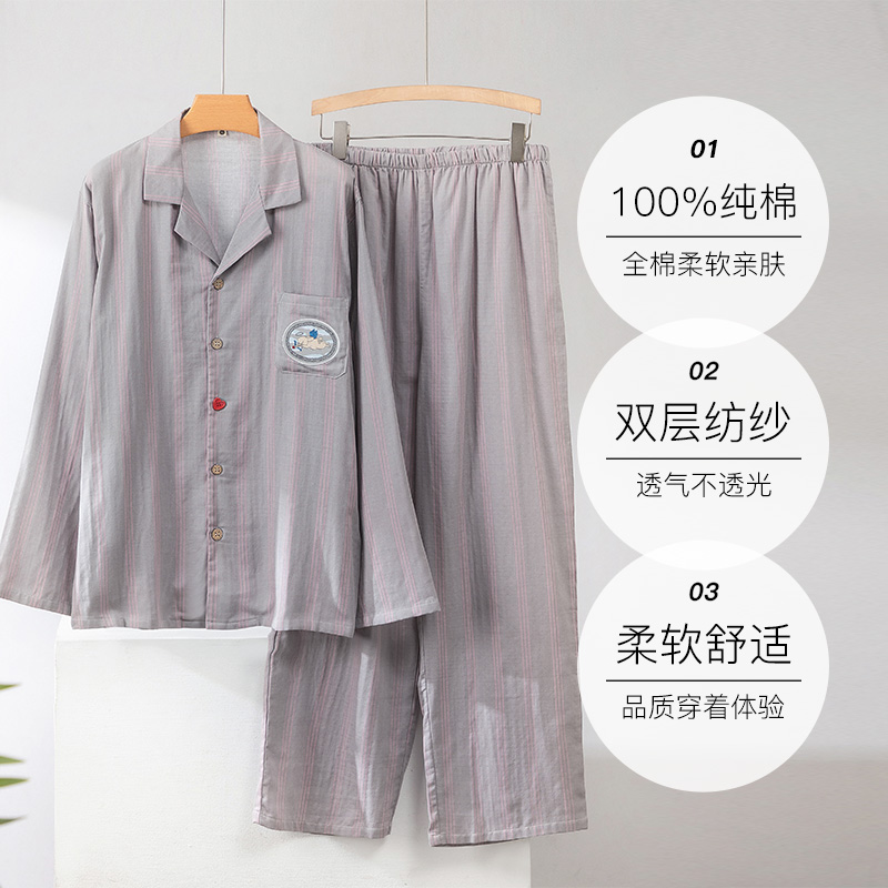 男士 toratani纯棉双层纱亲肤高级感竖纹长袖 家居服套装 自营