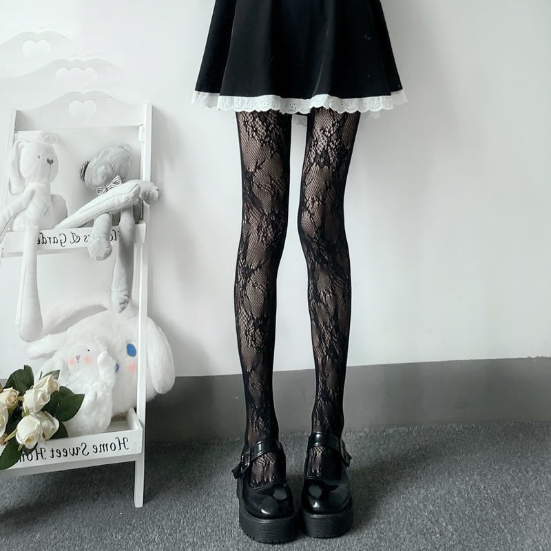 蕾丝镂空连裤 jk纯欲大长腿 袜美腿复古花藤网袜黑丝袜外穿弹力薄款