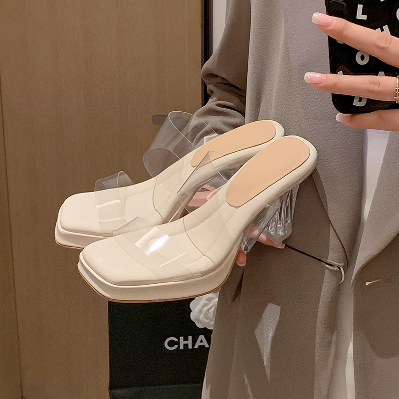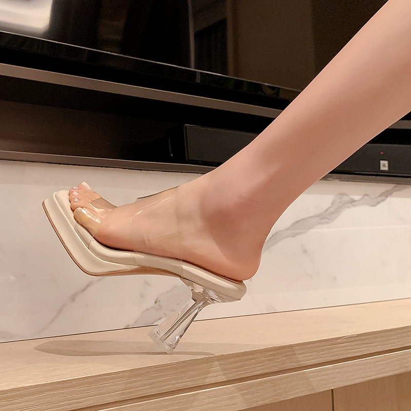 踩屎感透明高跟凉拖外穿女夏天性感水晶跟软底舒适不累脚厚底拖鞋