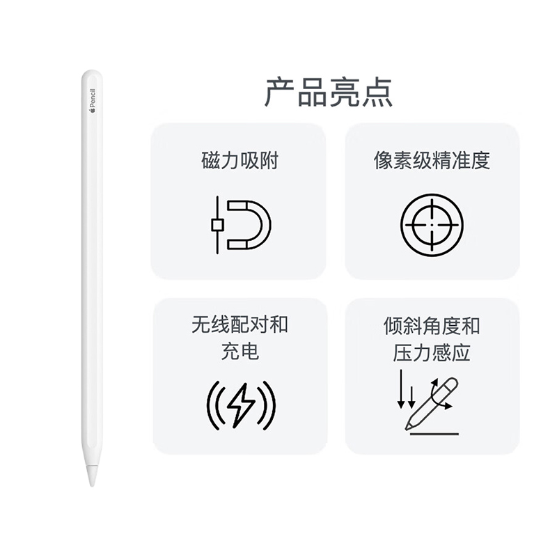 苹果 Pencil二代手写笔原装 pro 自营 电容笔全新 air Apple 压感触控笔无线充电铅平板触控笔适用iPad 正品