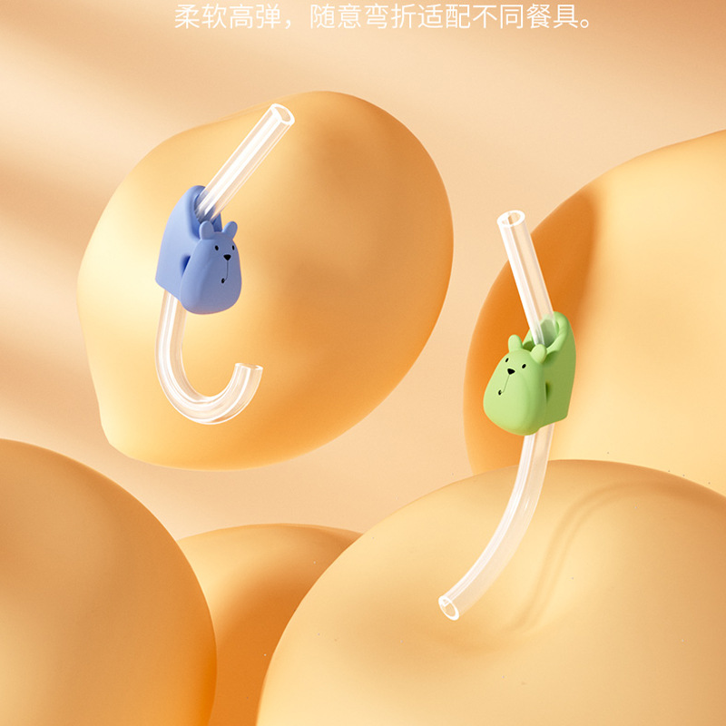 宝宝喝汤吸管婴儿喝粥神器带卡扣硅胶吸管儿童非一次性可拆卸易洗