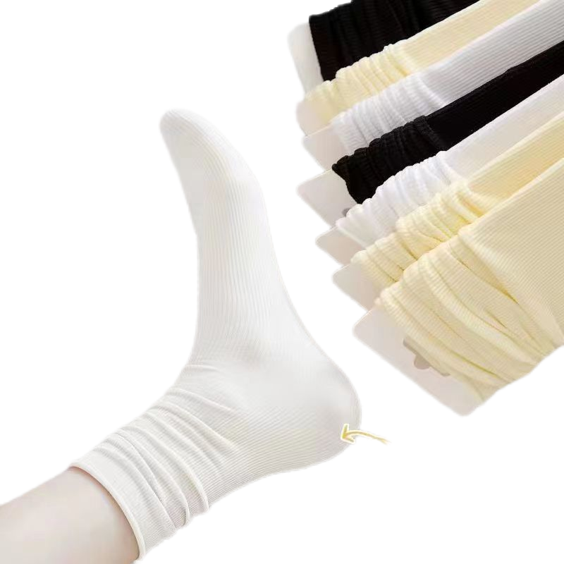 堆堆袜女夏季 袜子女袜春夏天冰冰中筒袜白色长筒袜冰丝袜黑色 薄款