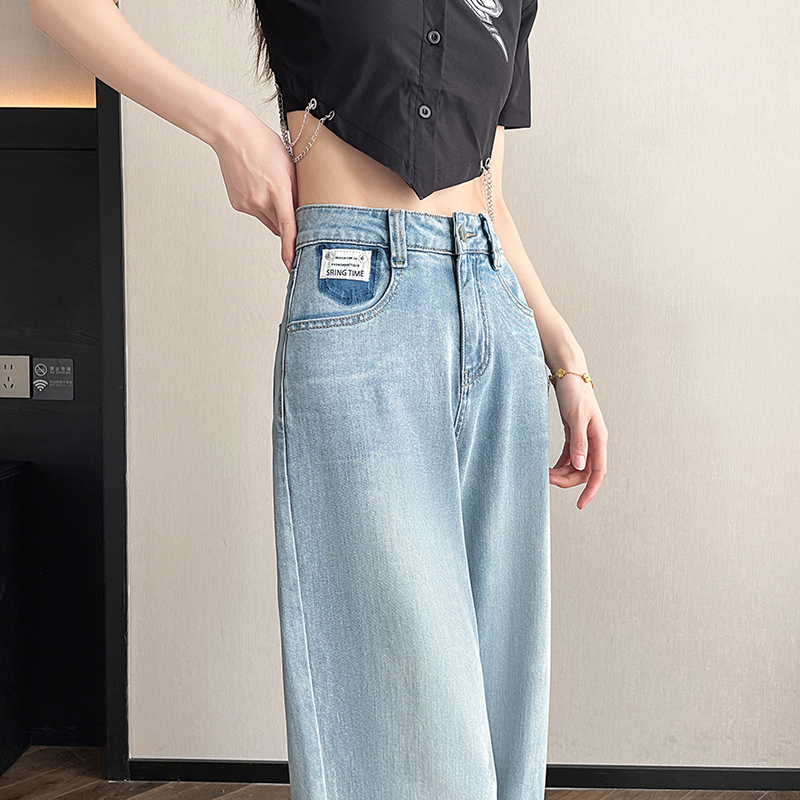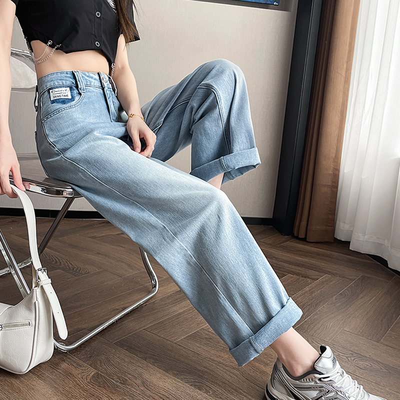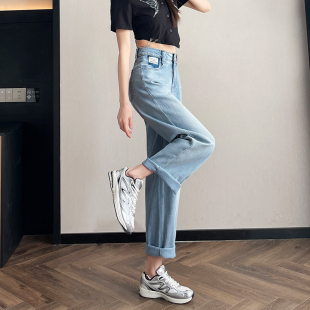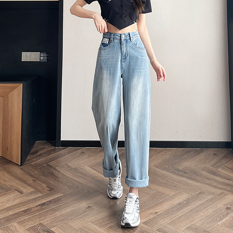 高腰宽松显瘦小个子卷边萝卜老爹裤 蓝色哈伦牛仔裤 女春秋2025新款