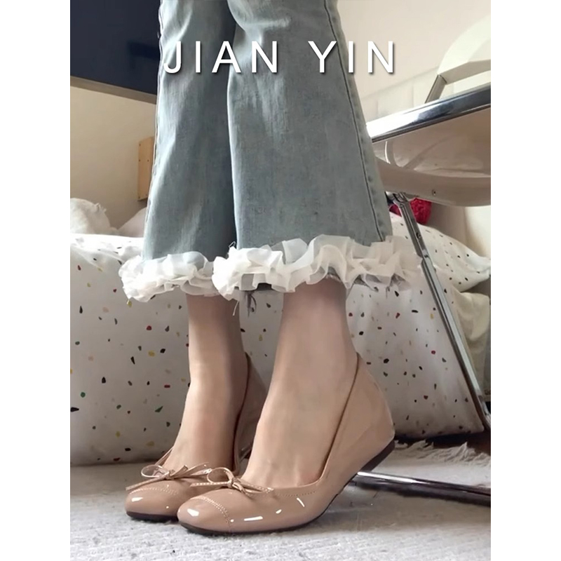 平底裸色浅口通勤软底单鞋 法式 2025新款 温柔气质内增高芭蕾风女鞋