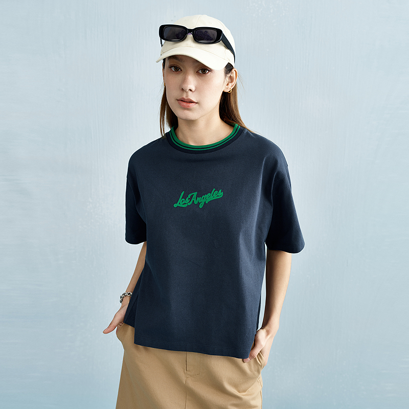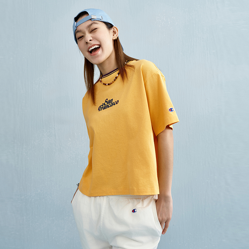 拼接撞色美式 新款 复古风T恤潮牌宽松 女2025夏季 Champion冠军短袖