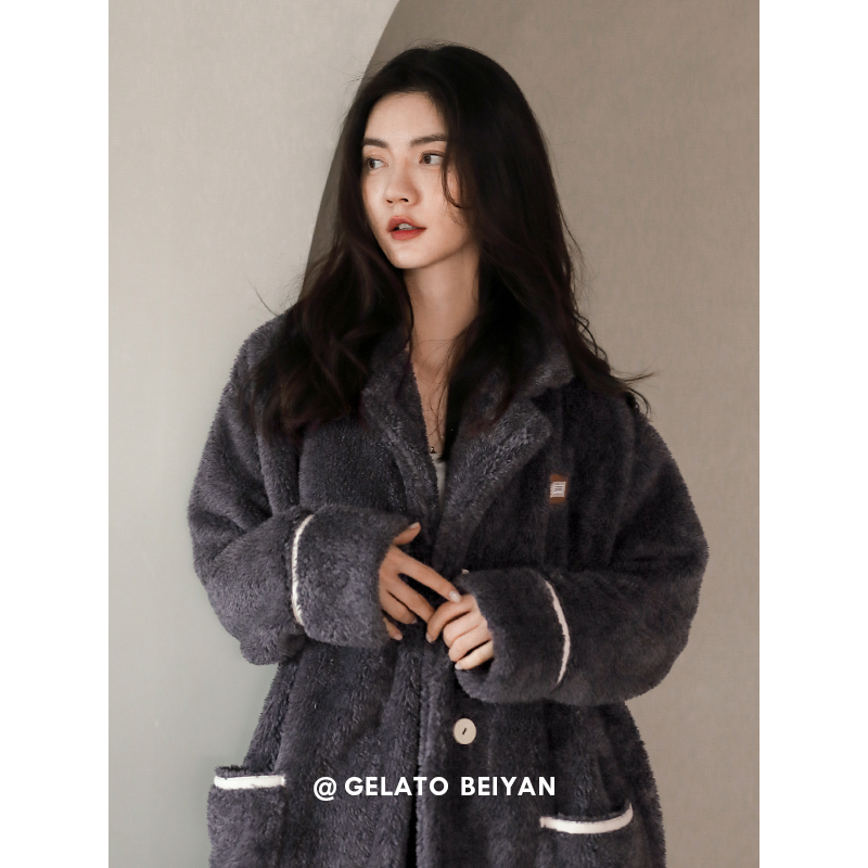 家居服套装 保暖法兰绒宽松大码 加厚珊瑚绒开衫 贝妍睡衣女士秋冬季