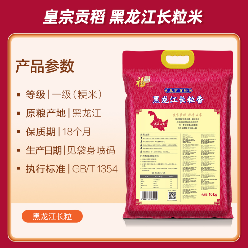 福临门大米皇宗贡稻黑龙江长粒香10kg东北大米长粒米粳米