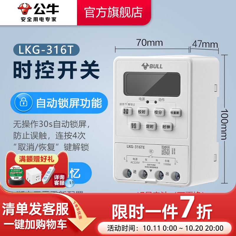 公牛时控开关220v定时器全自动微电脑时间控制器电源定时延时开关