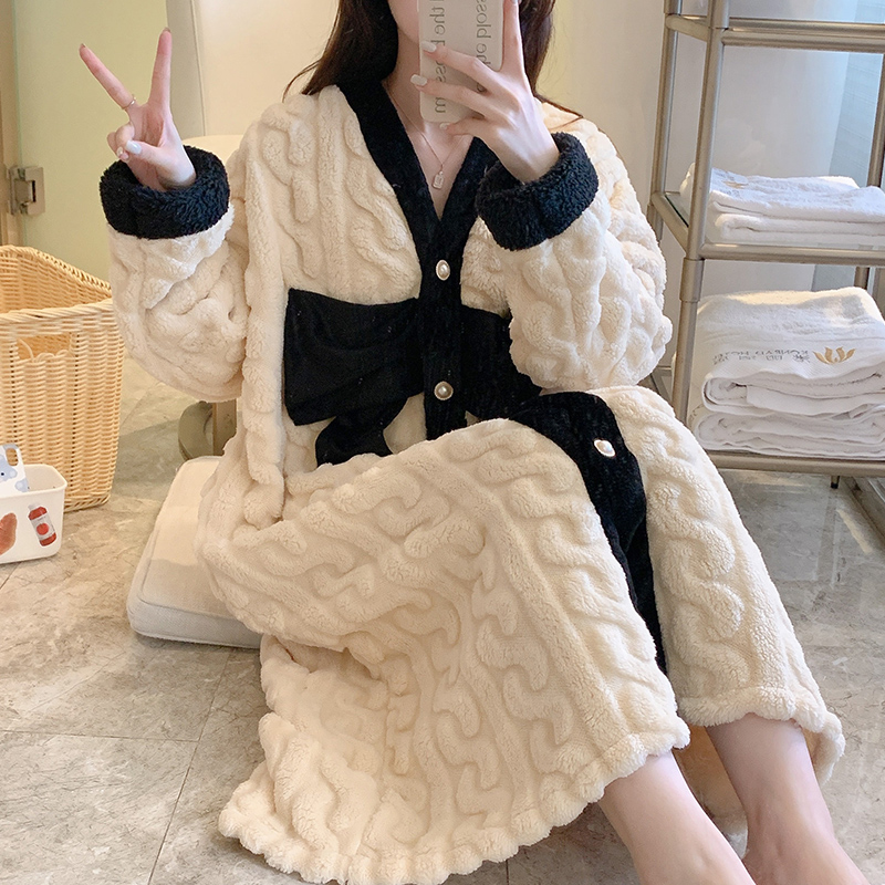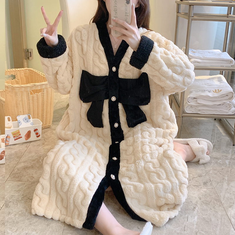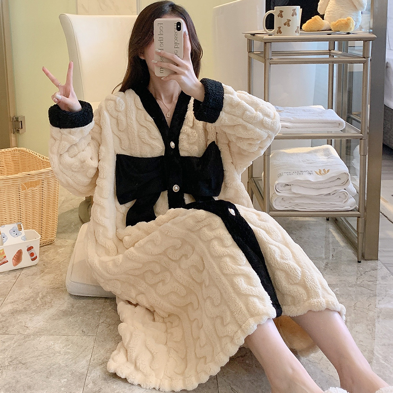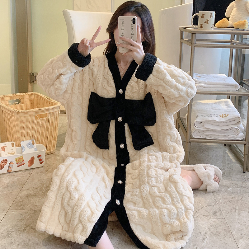 浴袍秋冬家居服 睡衣休闲慵懒风睡裙大码 轩靓睡袍女春秋季 纯棉长袖