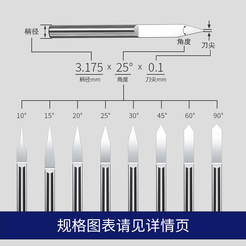 威特3A钨钢3.175mm数控平底尖刀cnc电脑雕刻机刀具浮雕锥度雕刻刀