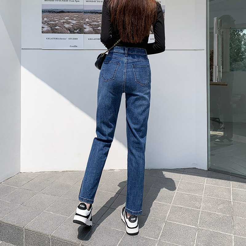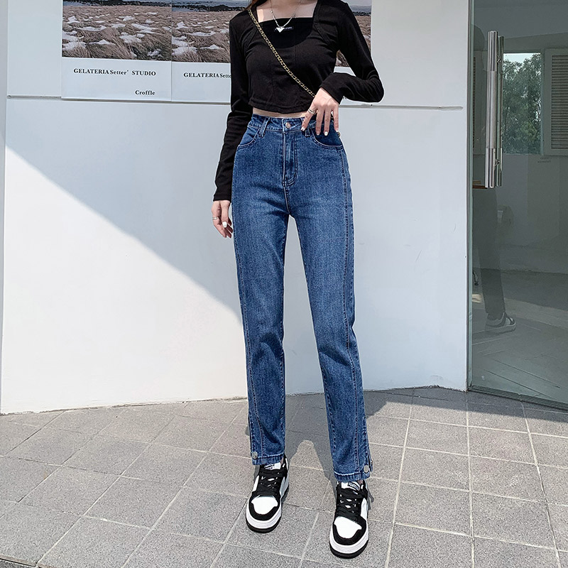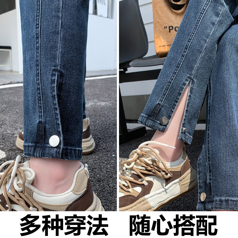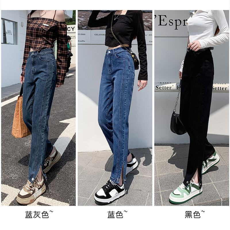 胖mm开叉长裤 2024新款 宽松哈伦直筒弹力大码 女春秋款 子 高腰牛仔裤
