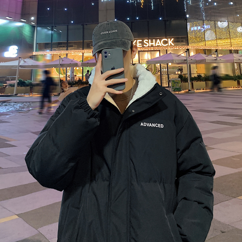 棉袄子 美式 白色棉衣男冬季 加绒加厚保暖羽绒服棉服外套男生情侣款