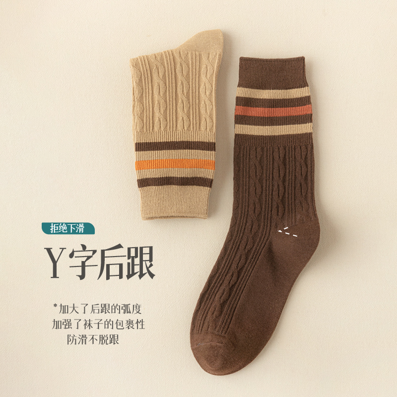 纯棉中筒棕咖色堆堆袜配勃肯鞋 2025新款 长袜 秋冬季 木耳边袜子女款