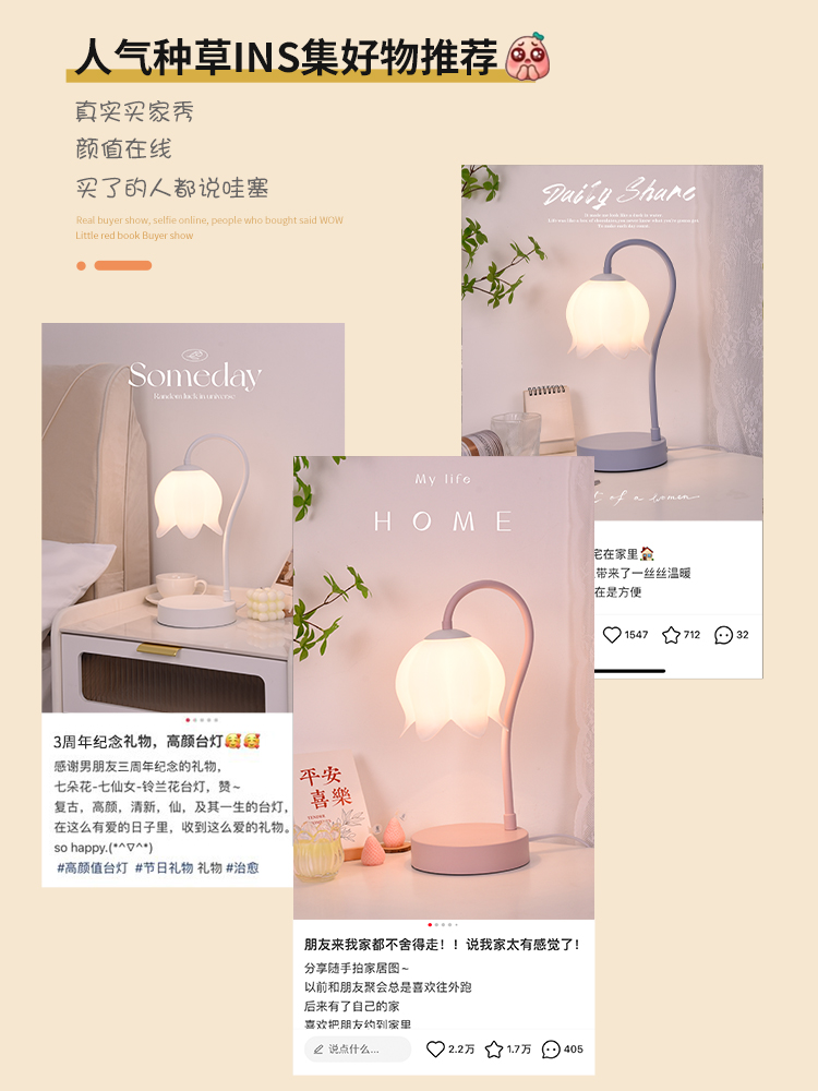 铃兰花朵台灯卧室床头灯轻奢2022新款 网红高级感主卧台灯氛围灯