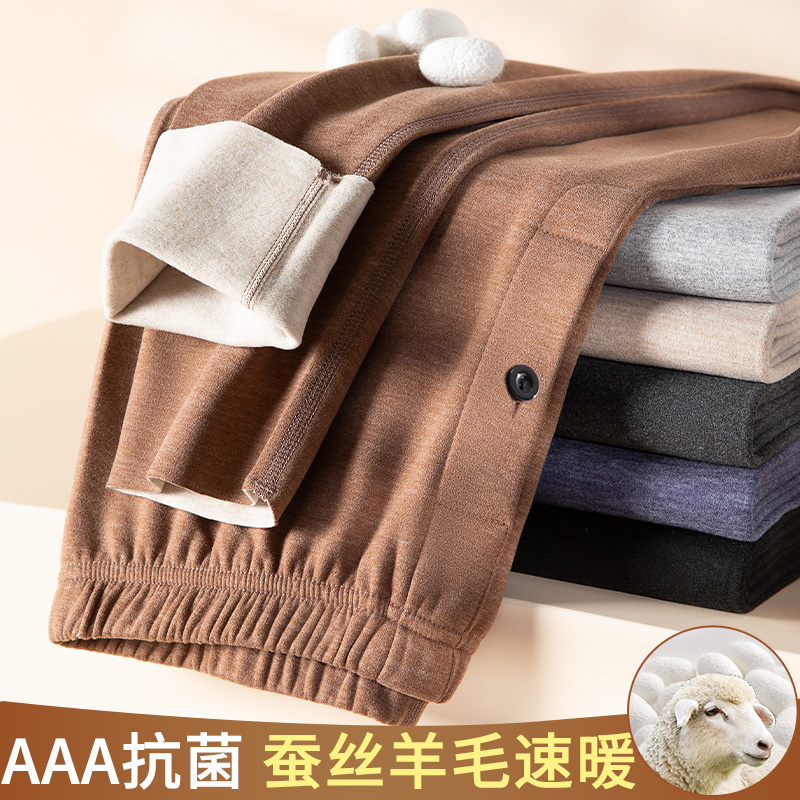 男士 衬裤 保暖裤 磨毛发热羊毛蚕丝打底线裤 内穿冬 加绒裤 德绒秋裤