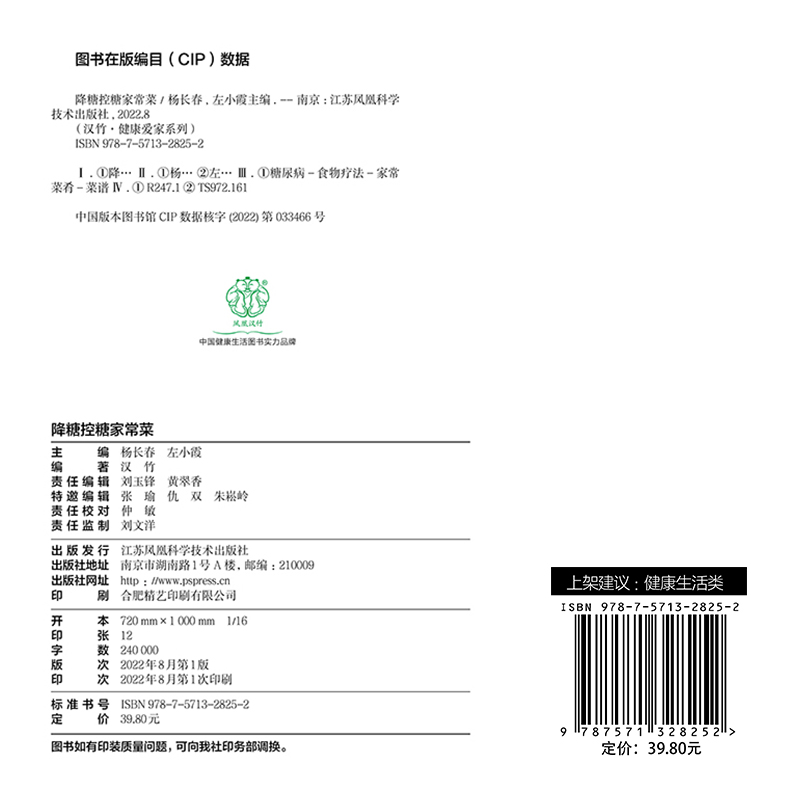 健康爱家系列 汉竹 杨长春 左小霞 社9787571328252 现货正版 江苏科学技术出版 降糖控糖家常菜