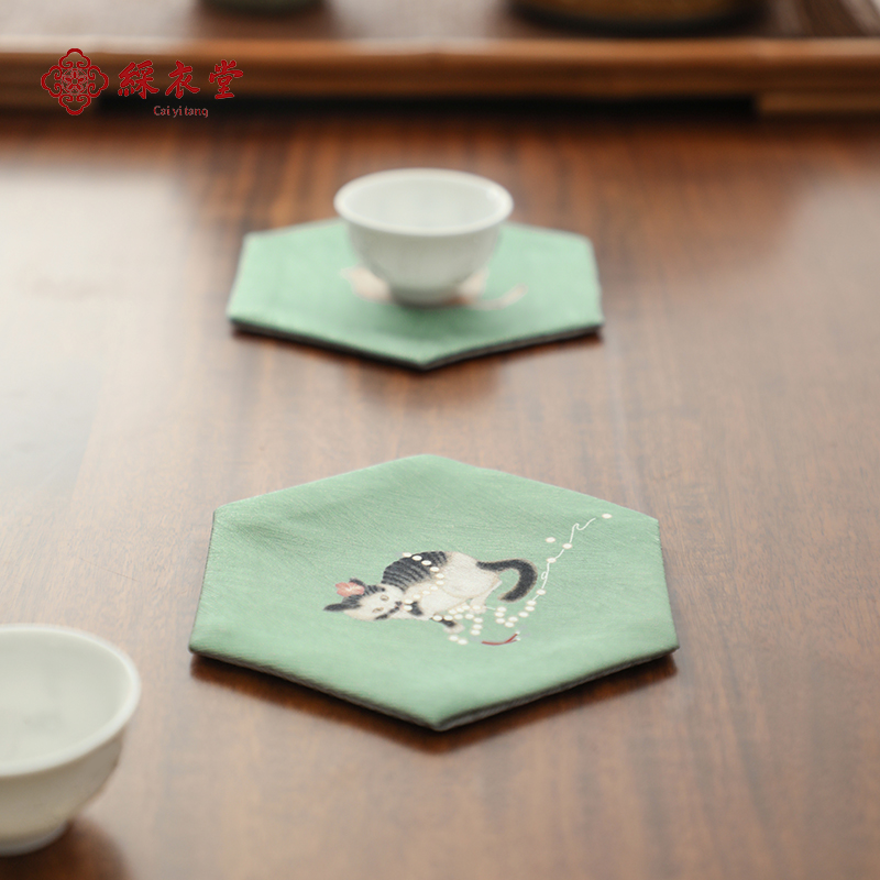 新中式 禅意一人茶席小尺寸中国风硅藻泥吸水茶台垫布桌旗茶杯垫子