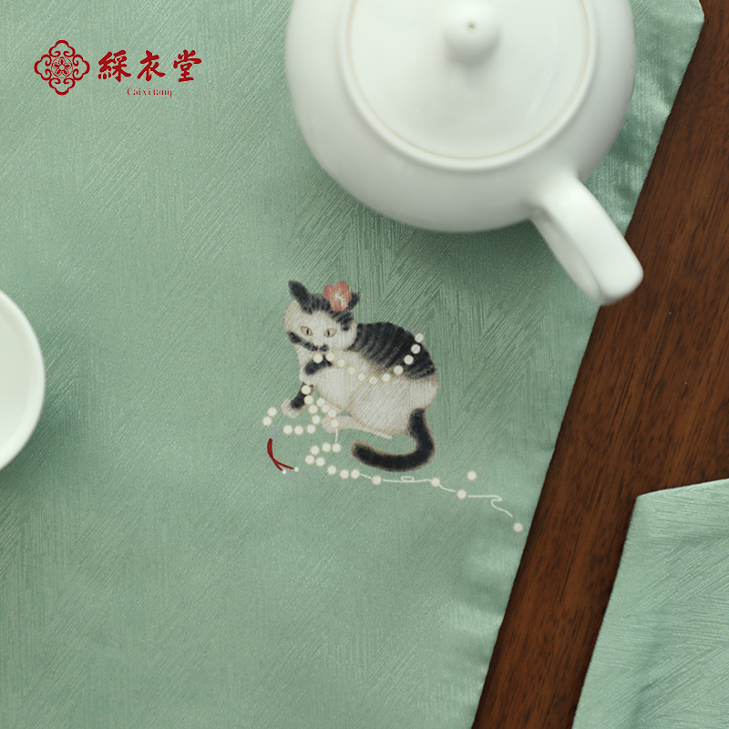 千里江山图桌旗茶席新中式 禅意茶桌垫布硅藻泥吸水泡茶台桌布长条