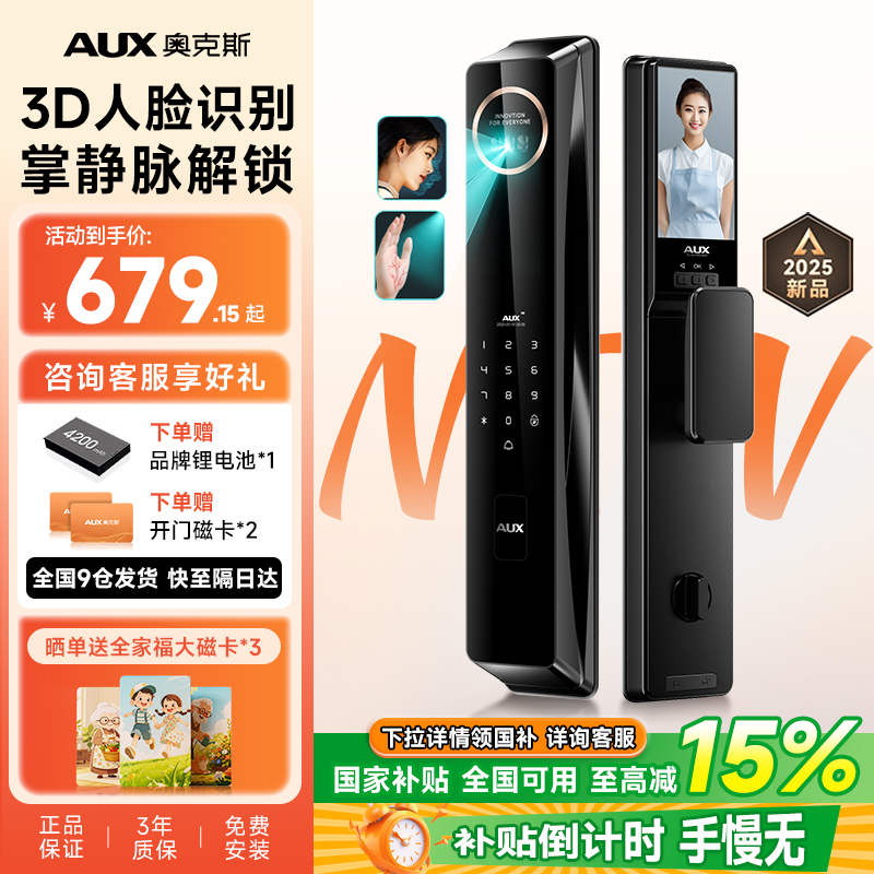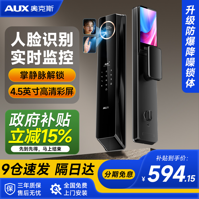 奥克斯智能锁智能门锁人脸识别指纹锁家用防盗门入户门电子密码 锁