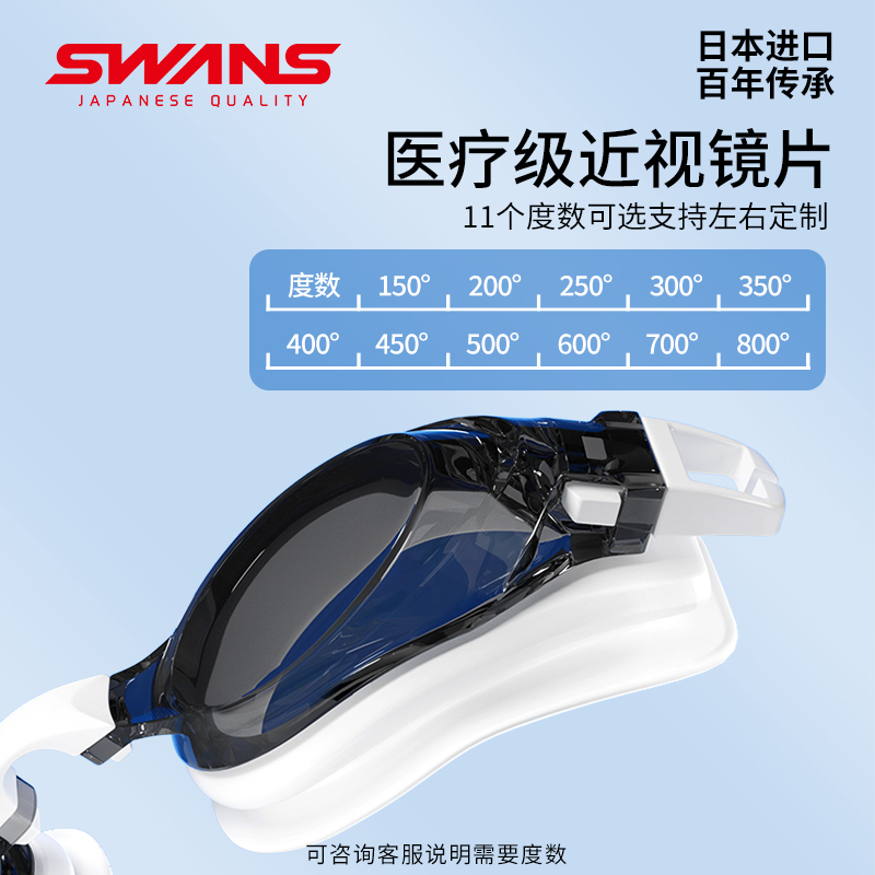 swans泳镜女士近视高清防雾防水专业成人游泳眼镜泳帽潜水装 备