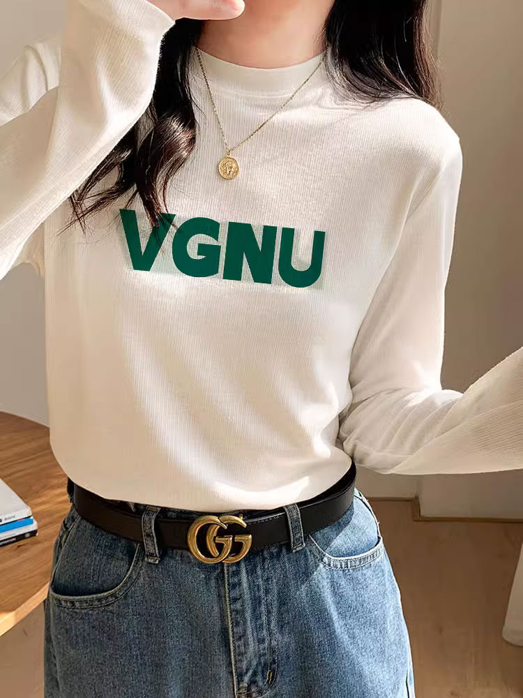 洋气内搭加绒打底衫 盐系甜酷上衣潮冬季 t恤女春秋款 白色纯棉长袖